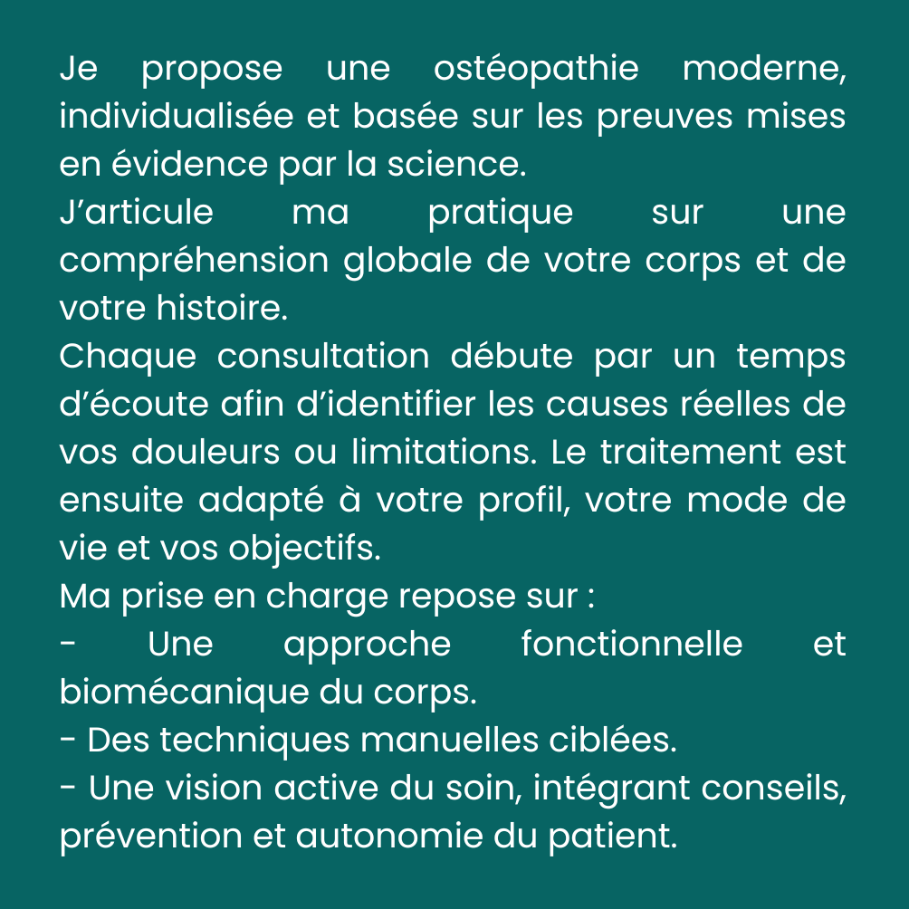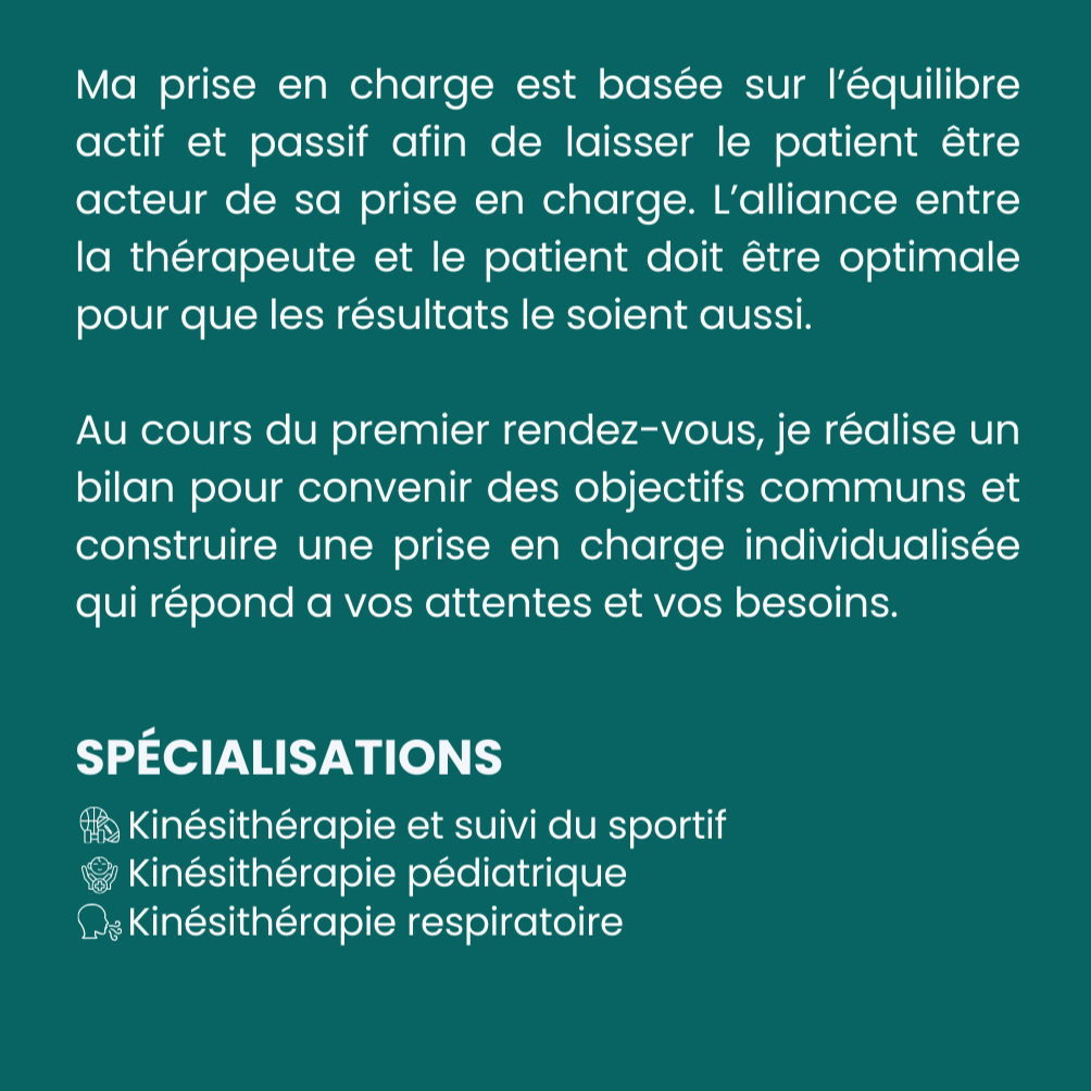 Le cabinet est pensé pour la collaboration entre professionnels de santé (kinésithérapeutes, ostéopathe…) afin de vous apporter une prise en charge personnalisée, à l’écoute et cohérente :